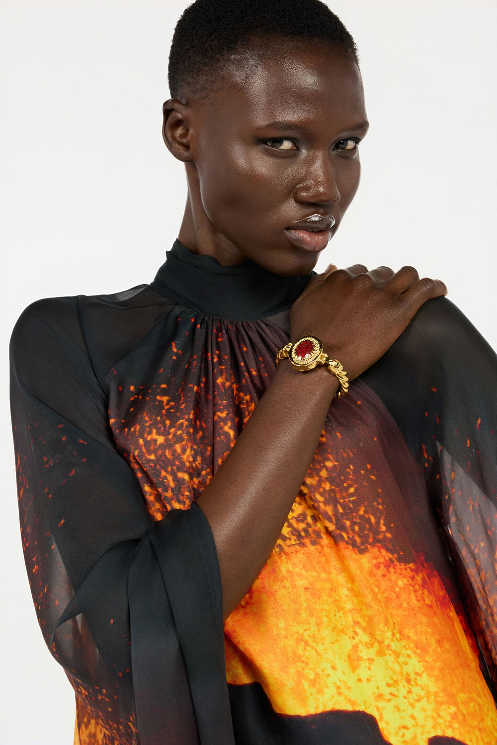 ROBERTO CAVALLI Golden Bangle With Ruby Stone