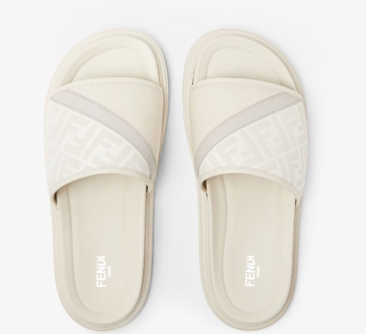 FENDI  Fendi Diagonal Slides White FF jacquard and leather slides