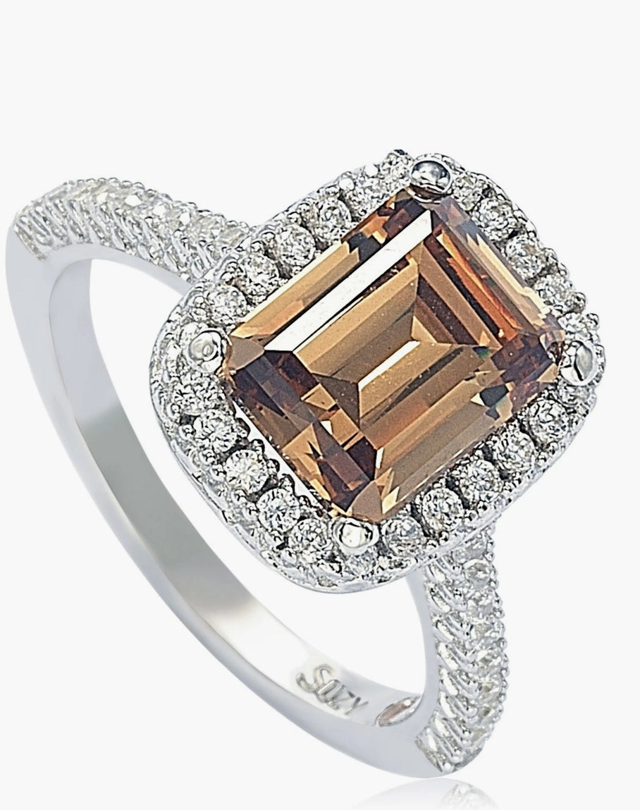 Sterling Silver Ascher Cut Brown CZ RING
